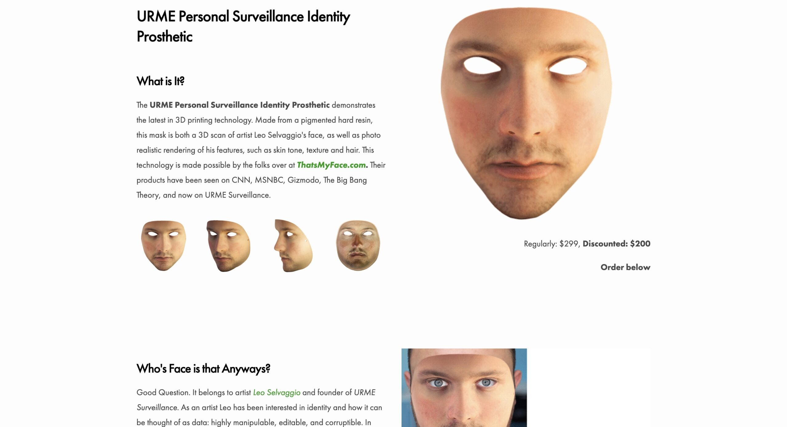 prestando altruisticamente il suo stesso volto allo sviluppo di una maschera prostetica. Il progetto si concentra sull’aspetto sociale della sorveglianza e, contrariamente a CV Dazzle e altre soluzioni “vistose”, punta a nascondersi tra la folla: essere irriconoscibile dalle macchine e dagli altri cittadini. Proponendo in maniera provocatoria il volto di un uomo bianco, “il più invisibile alle telecamere”,44https://hyperallergic.com/127797/masks-for-the-surveillance-state/