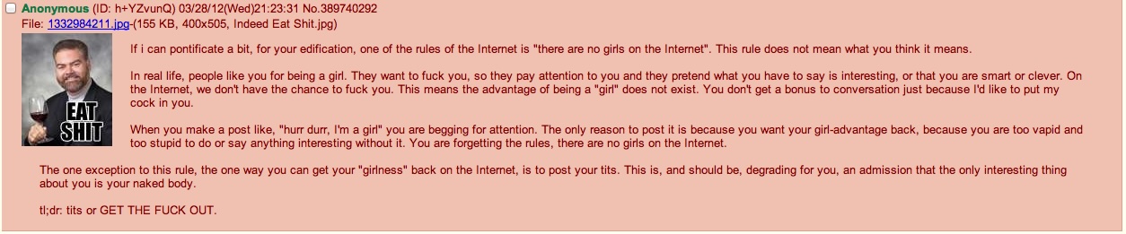 Esempio di un post con i toni tipici di 4chan.
